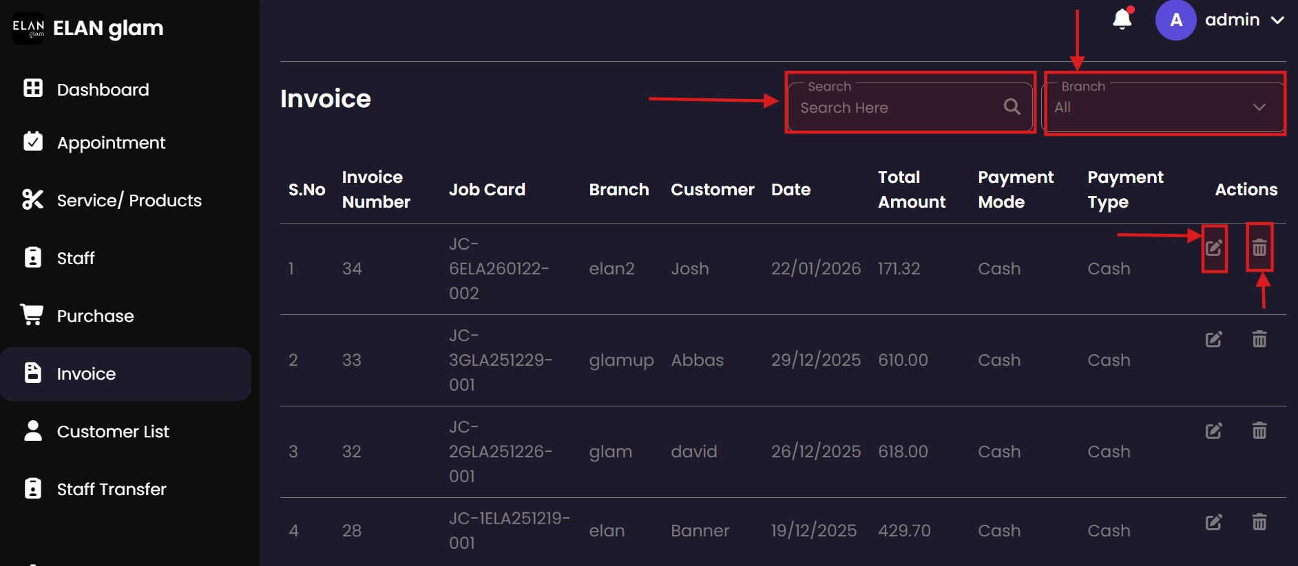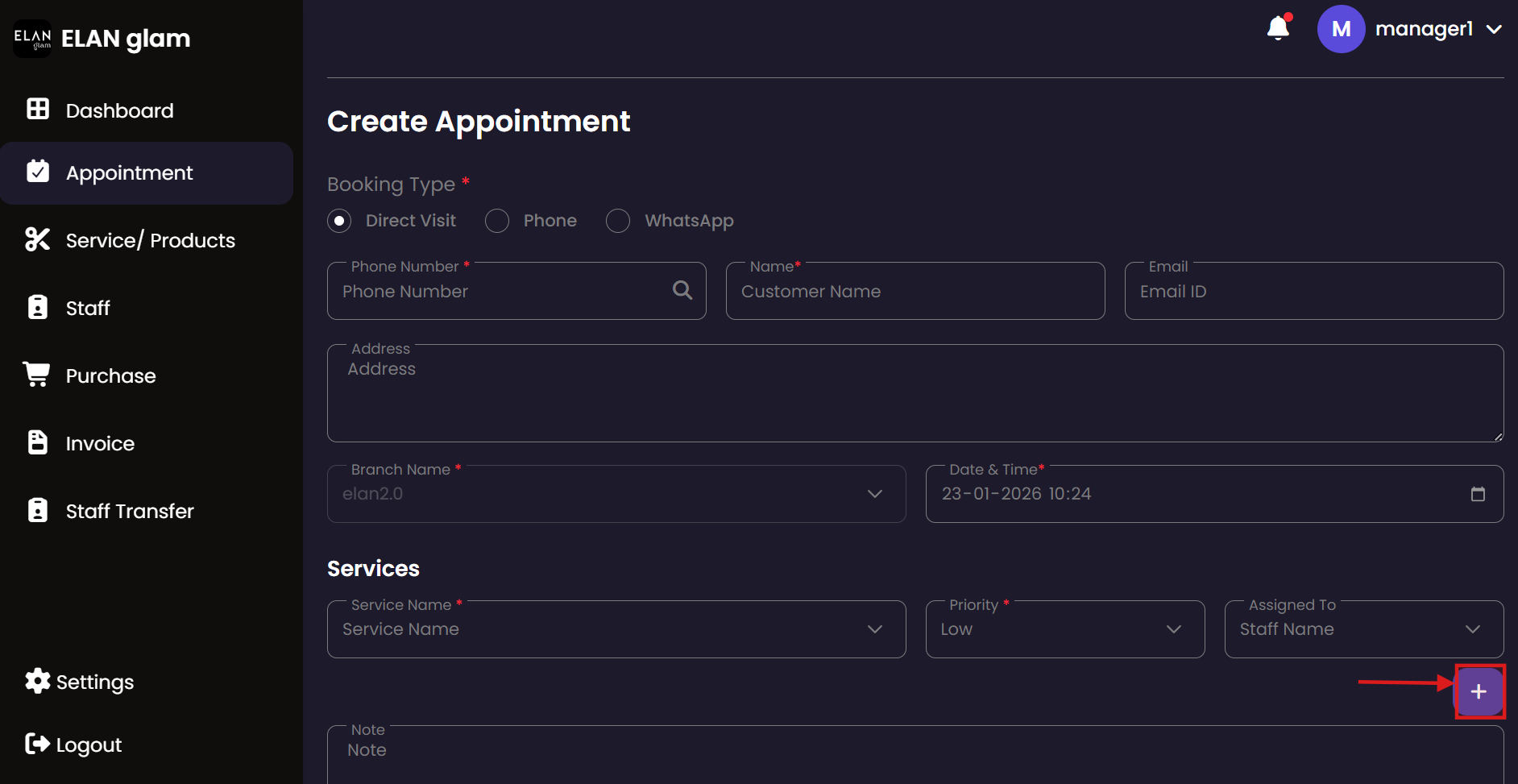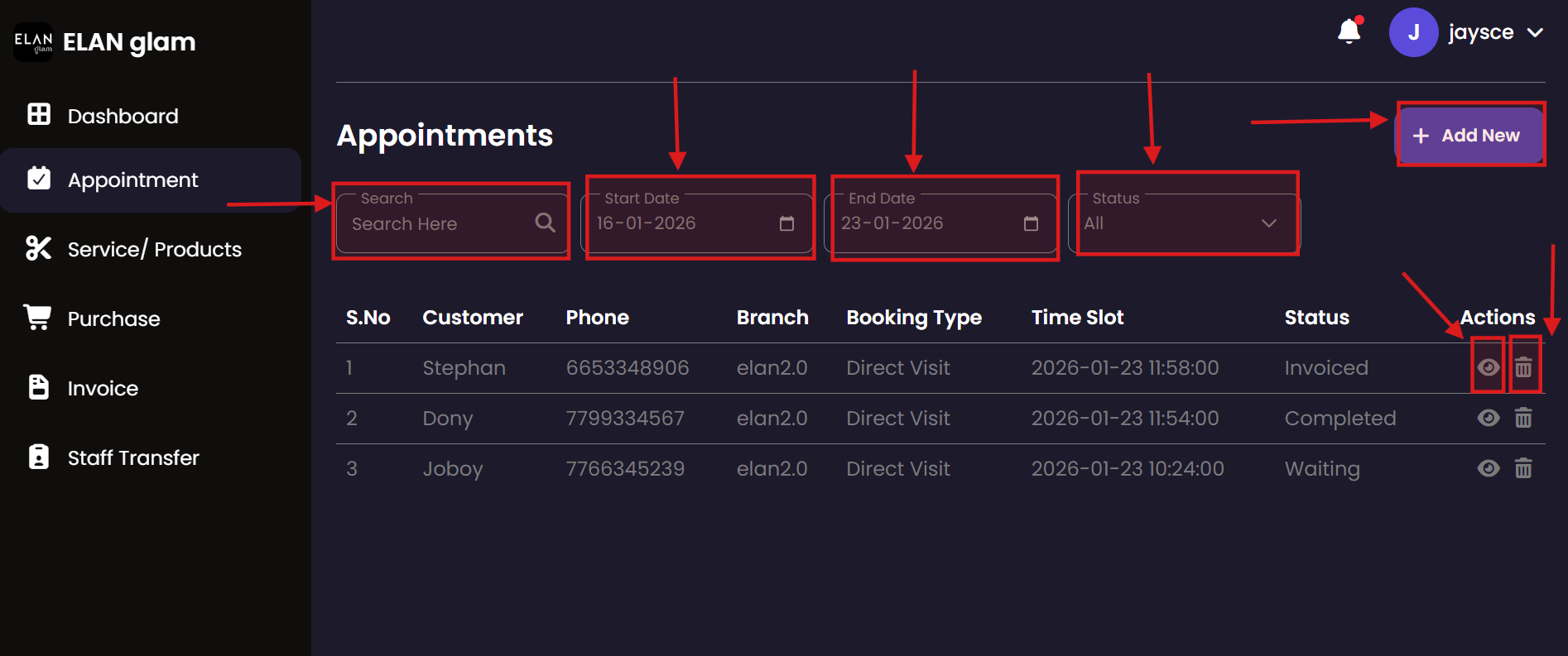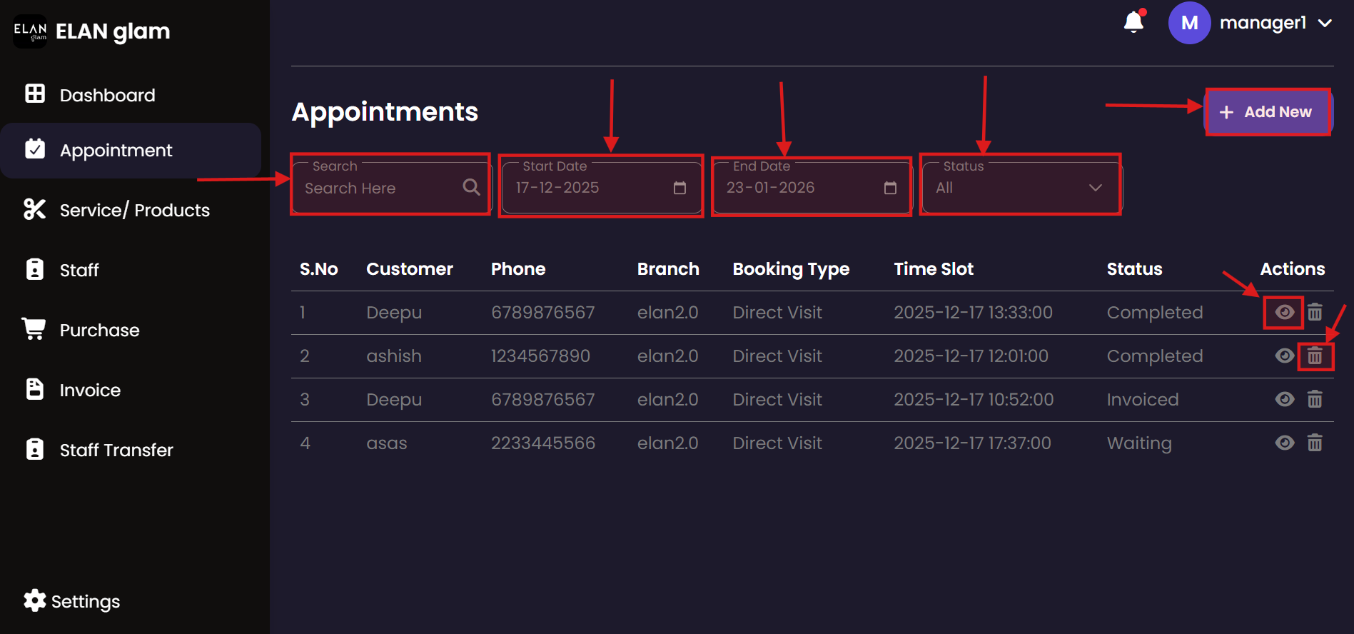 The Appointment system allows administrators to schedule, track, and manage customer bookings. It provides a centralized view of all service engagements, ensuring that staff and resources are effectively allocated across different branches.