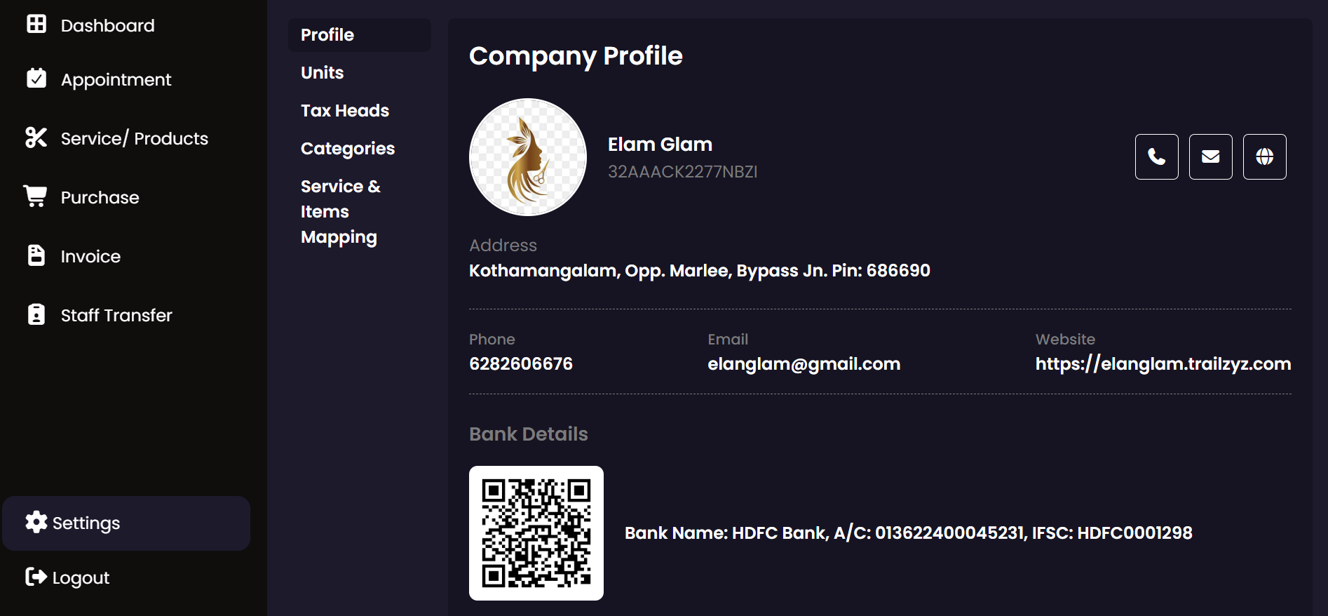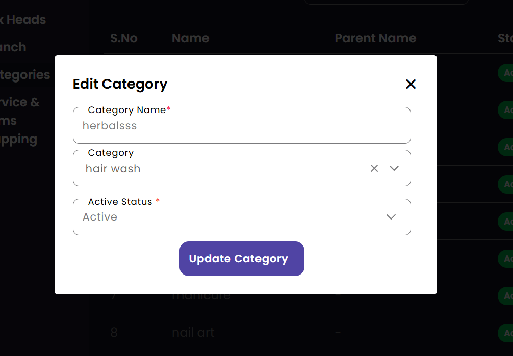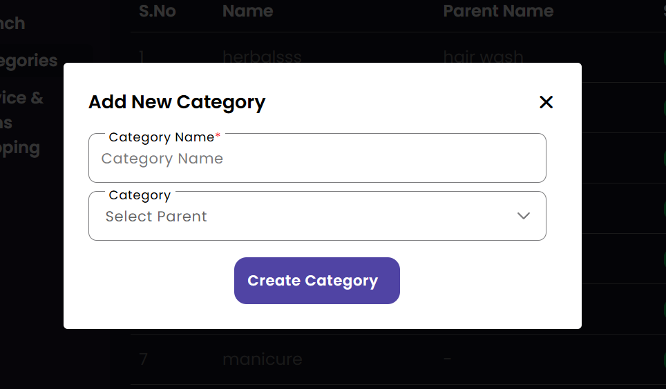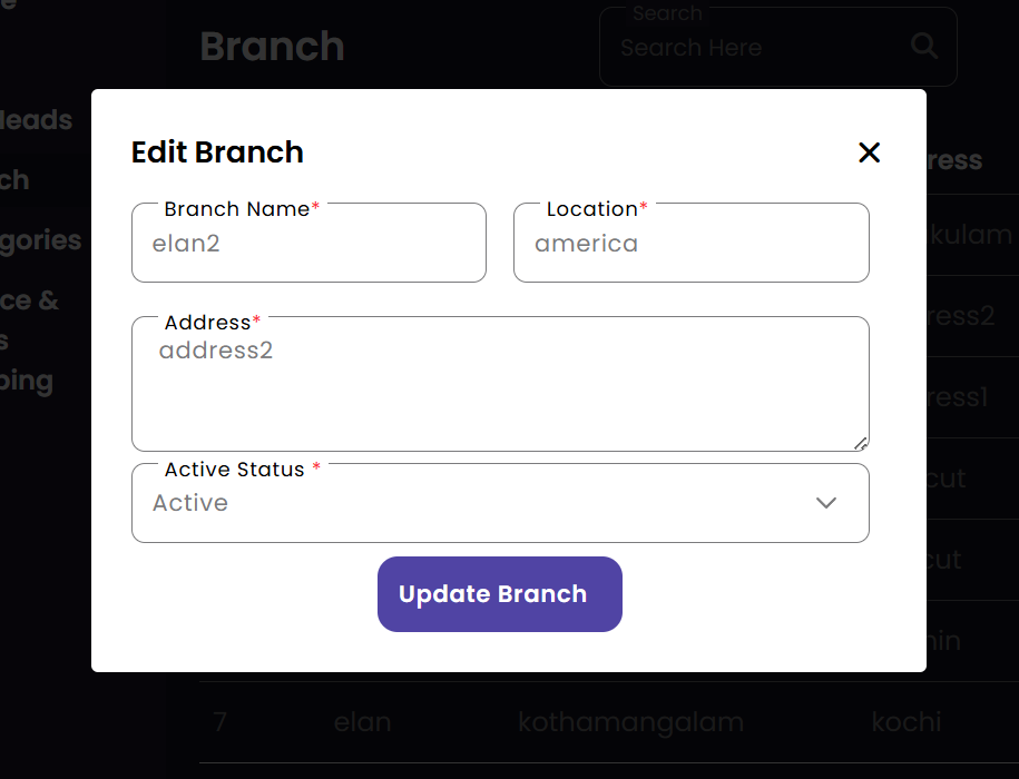 Manage and configure different salon locations. Add new branches, update contact details, and view the entire organizational structure from this centralized management interface.