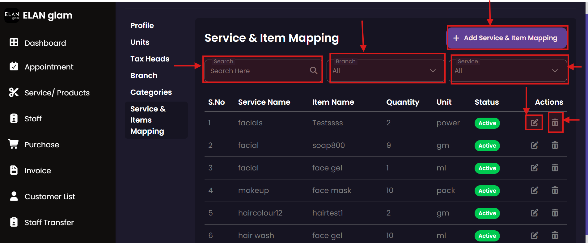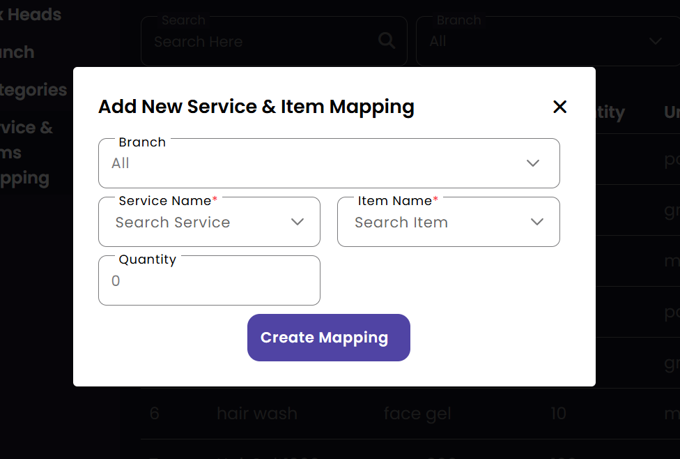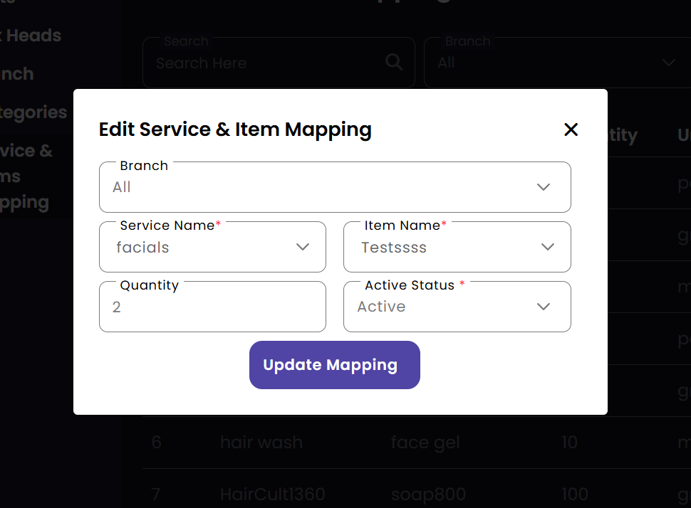 Ensure that all branch services have the necessary inventory items associated with them. The mapping system automates the assignment of products to services, streamlining the job card process for service staff.