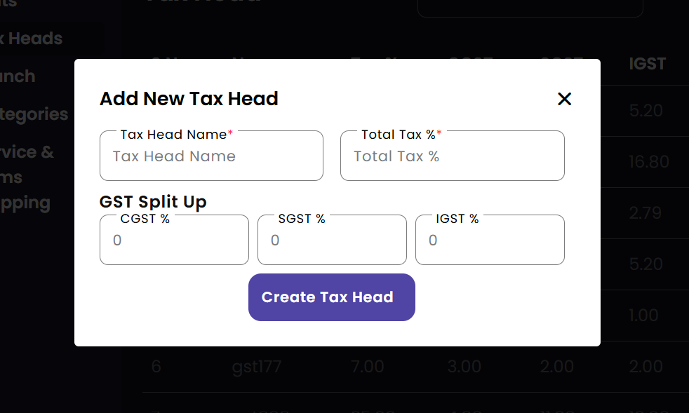 Create Tax Head