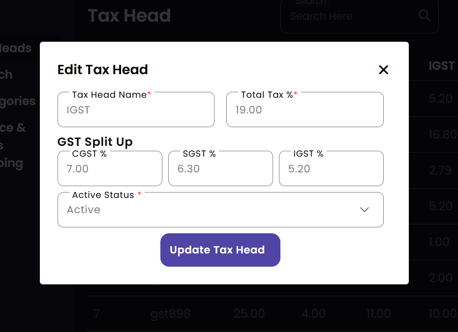 Update Tax Head