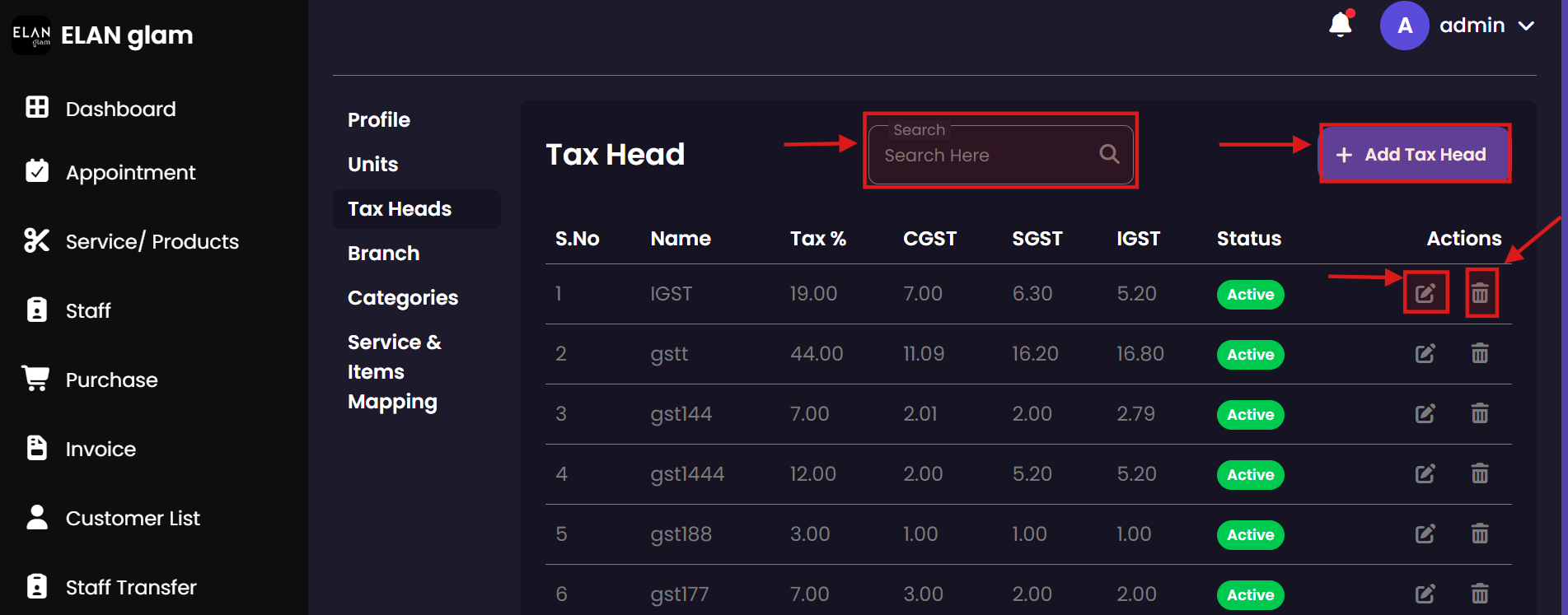 Search Tax Head