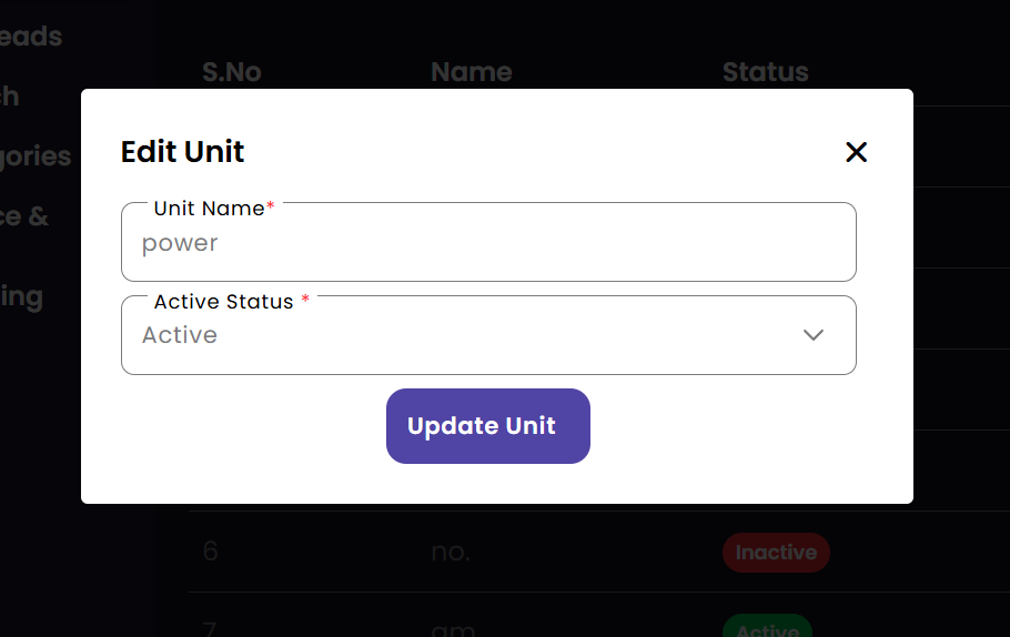 Track the units of measurement available for your branch operations. Managers can review standard units to ensure that all stock entries and service records are consistent with organizational standards.
