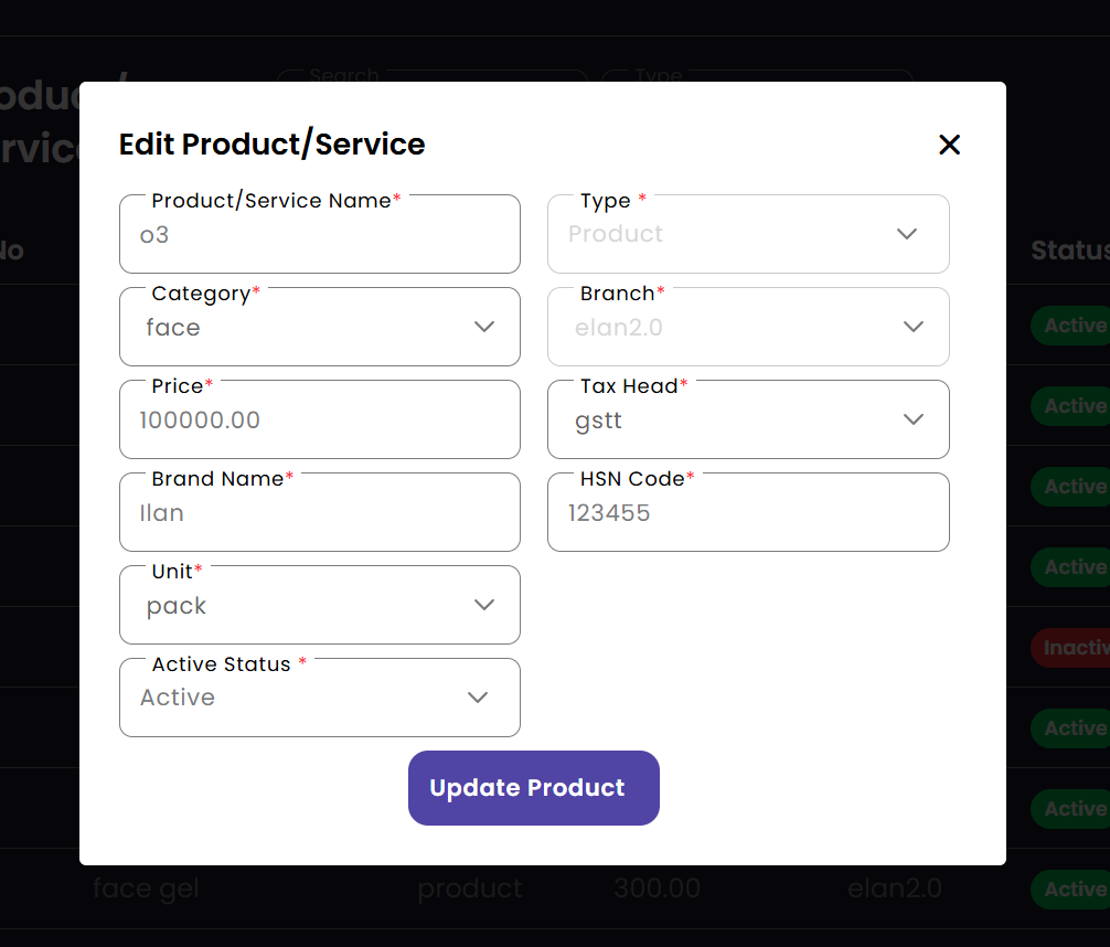 Update Product/Services