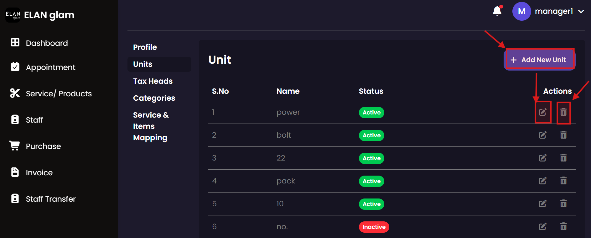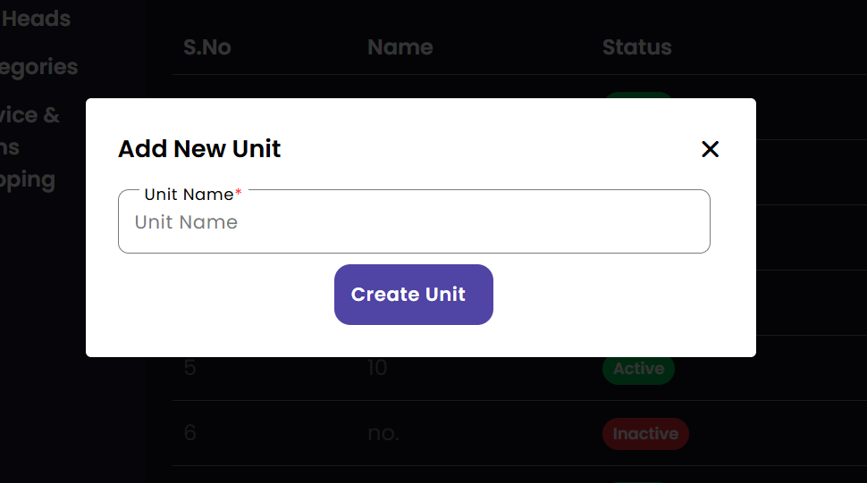 Define the units of measurement used for products and services. Set up standard units like 'ml', 'pcs', or 'sessions' to ensure consistent stock tracking and service billing across all branches.
